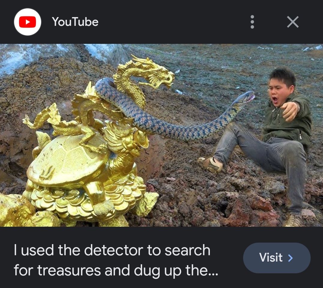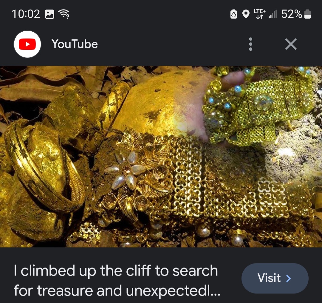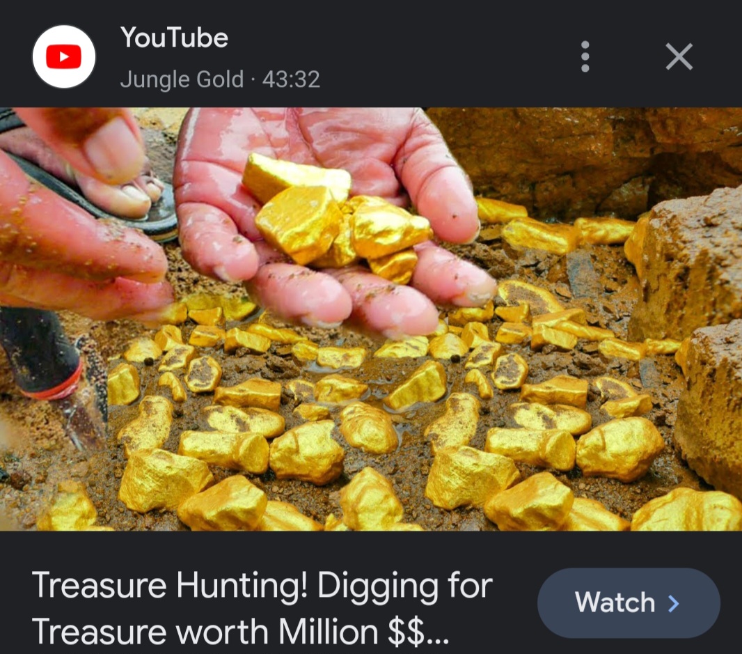 I find this curious, my own tastes, there are perfectly real videos of people digging up Smokey Quartz points on Mount Blanc, gwindels, as well as on Pikes Peak and in Alabama, but they have the merest fraction of views, the real treasure lies in the generating of mindless content, monetizing it, dragging out the length of the video for "maximum engagement", not a "get to the point mentality", or "this is how / where we do it and what we find", it's appealing to an innate deep seated desire to find treasure and become rich beyond our wildest dreams.