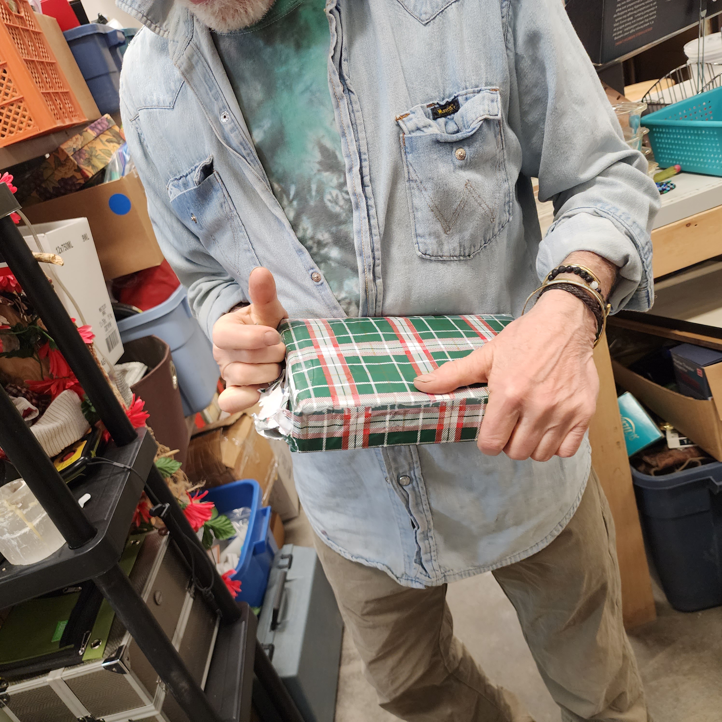 Tuesday, the same, volunteer - a few treasures, an unopened Christmas present (that proves to be a box of chocolates), an old treasure chest that really needs to be filled with doubloons and reburied, coffee, sun in the park.