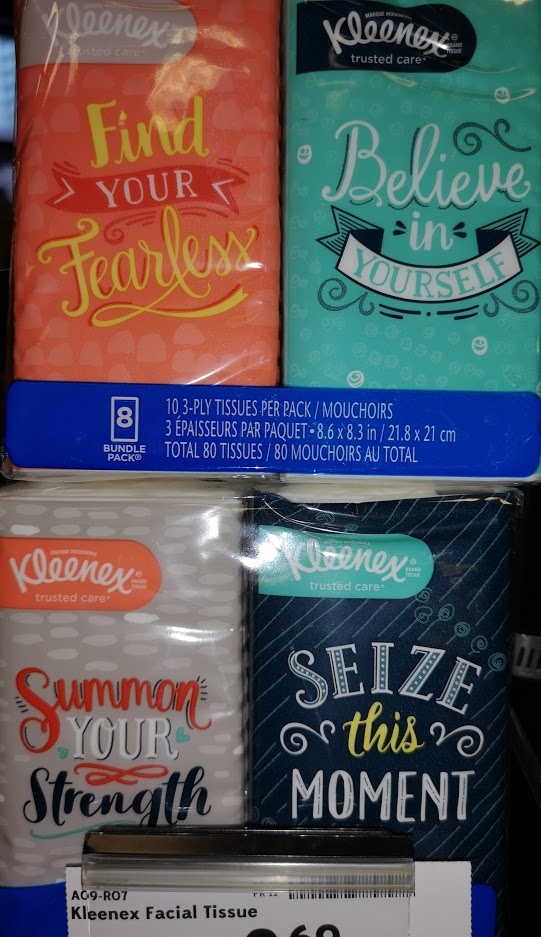 Spotted these in the supermarket. WTF? Motivational Kleenex?
