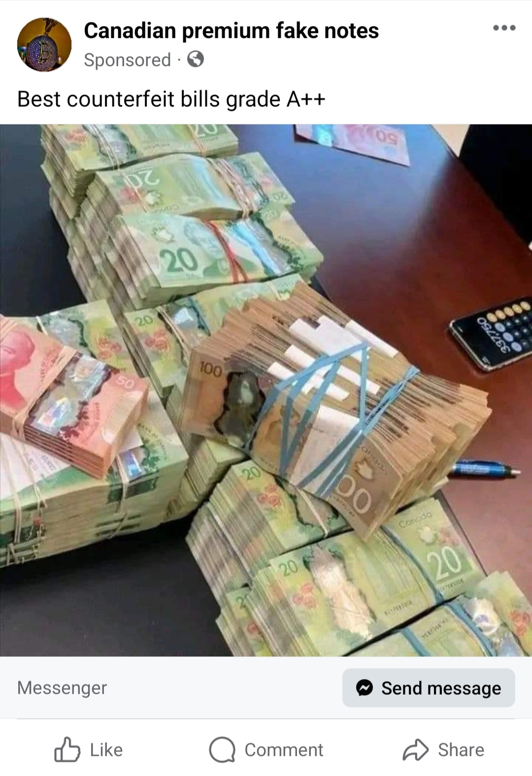 Now, they got the audience right, who doesn't want a big pile of counterfeit cash?