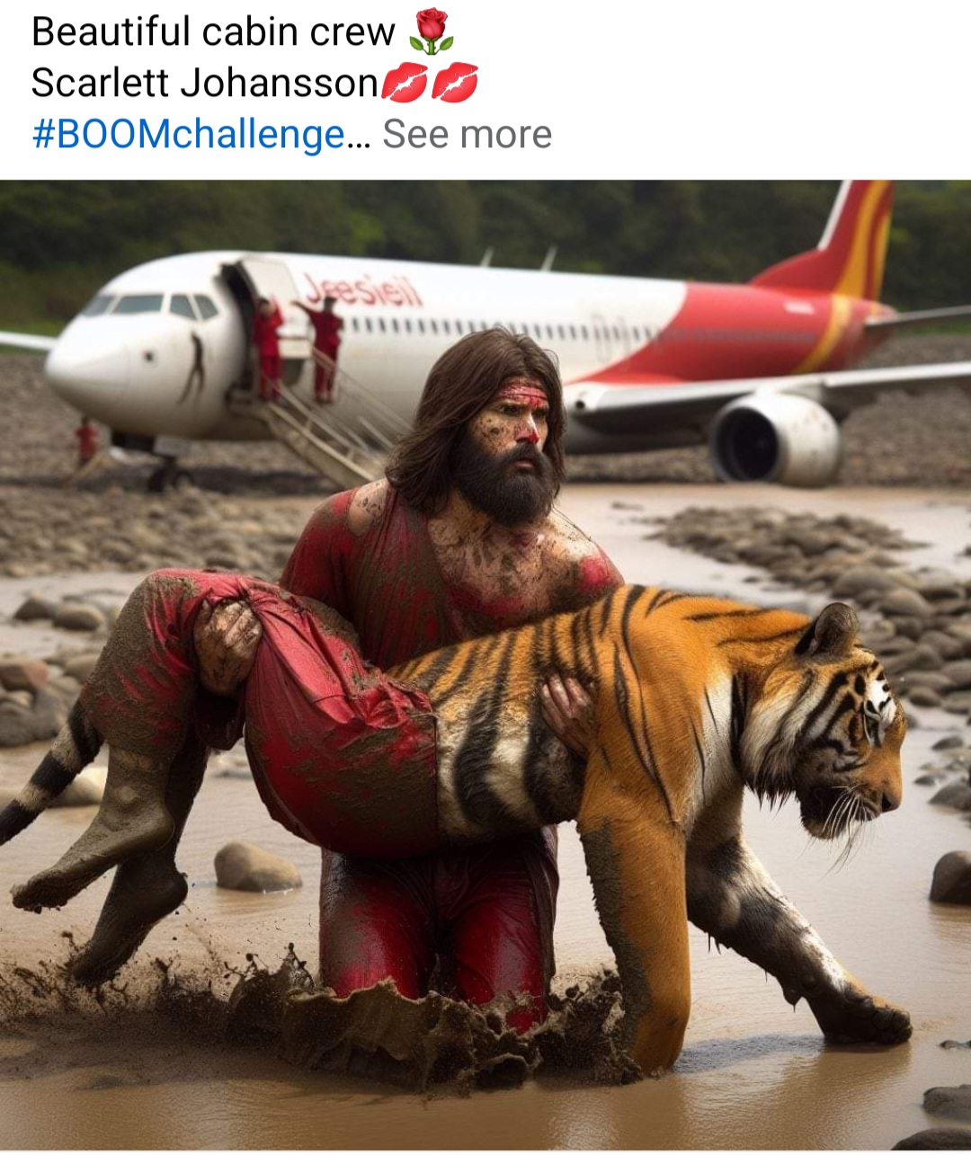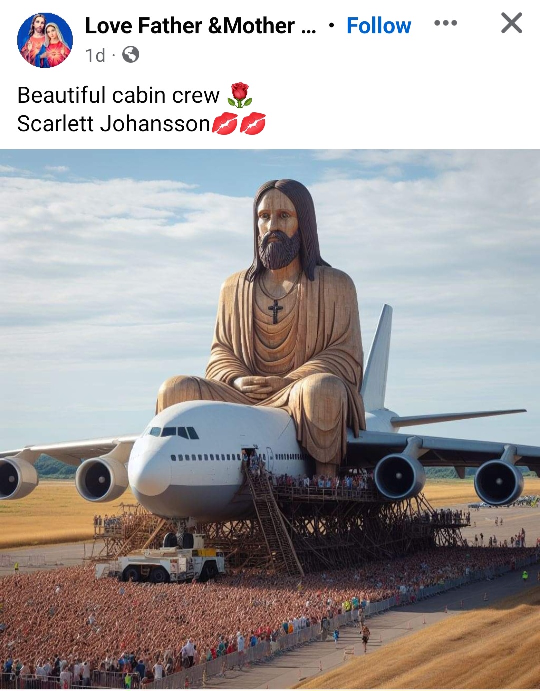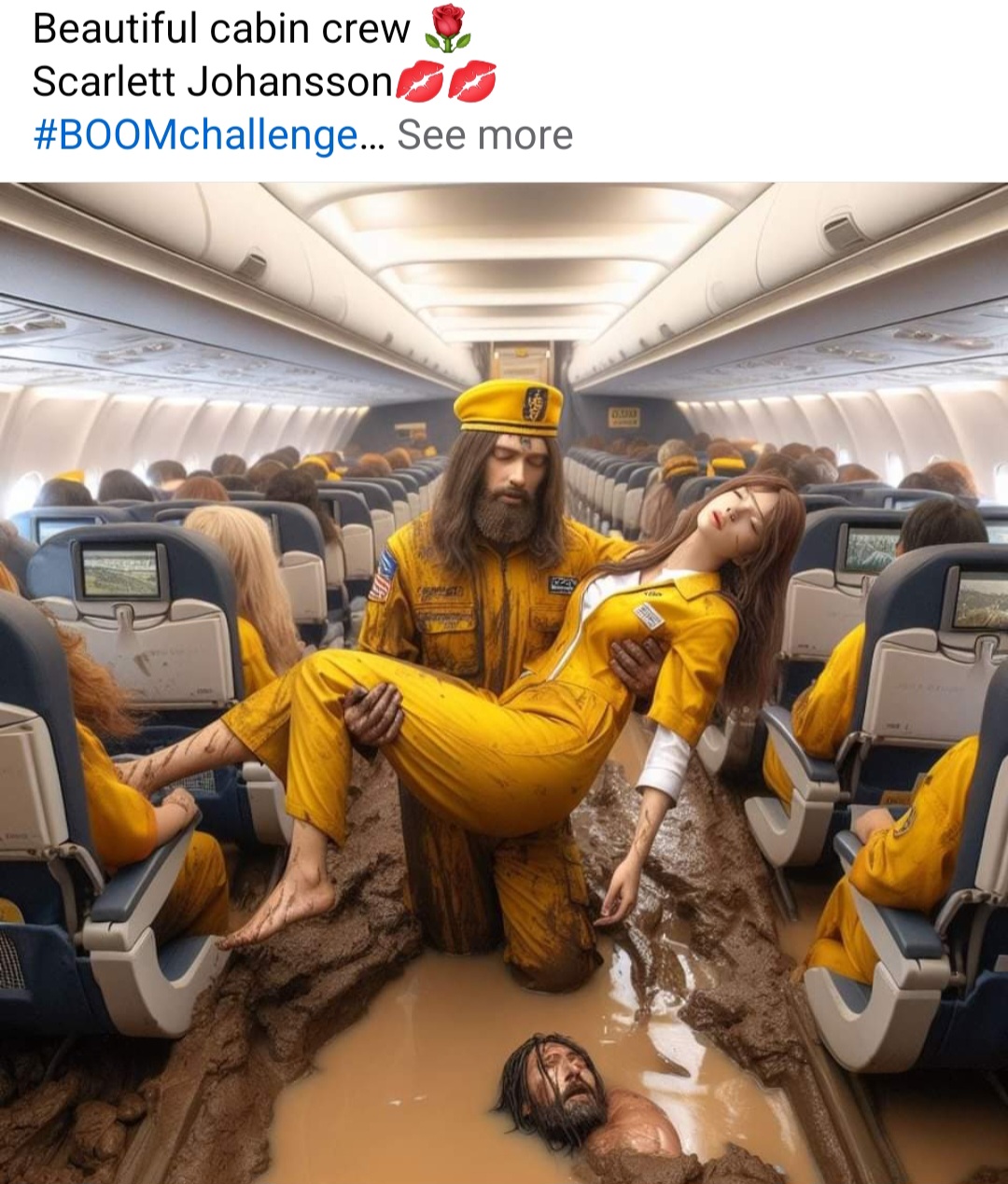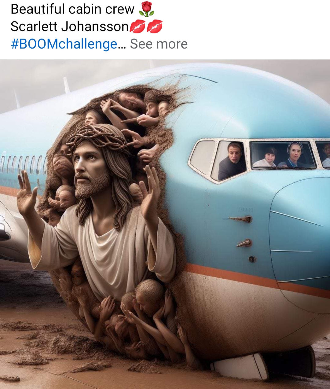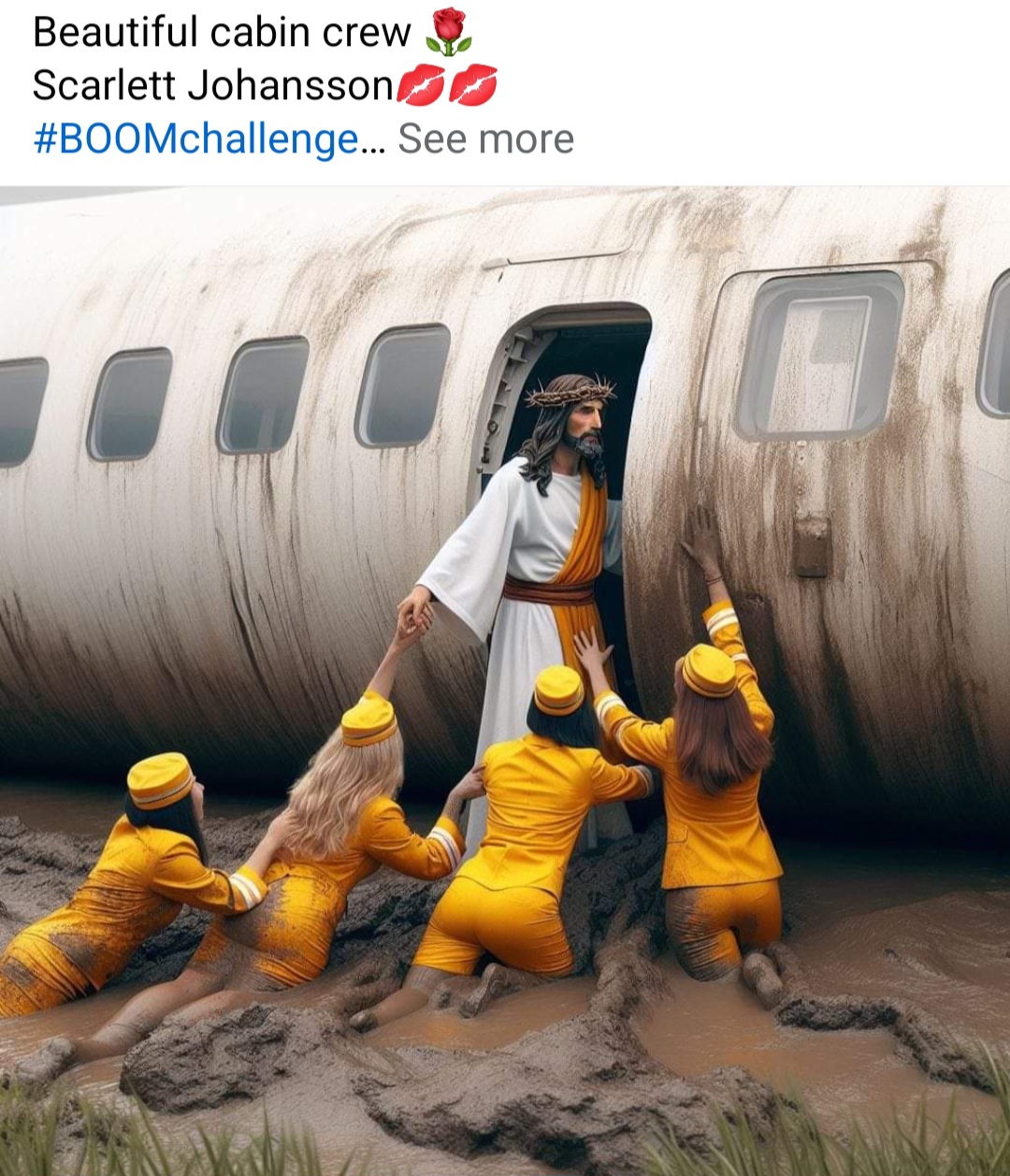 Jesus not letting the cabin crew onto the plane. This - the mud, plane, stewardess, Jesus, what in the fuck was the prompt, and WHY WHY WHY?