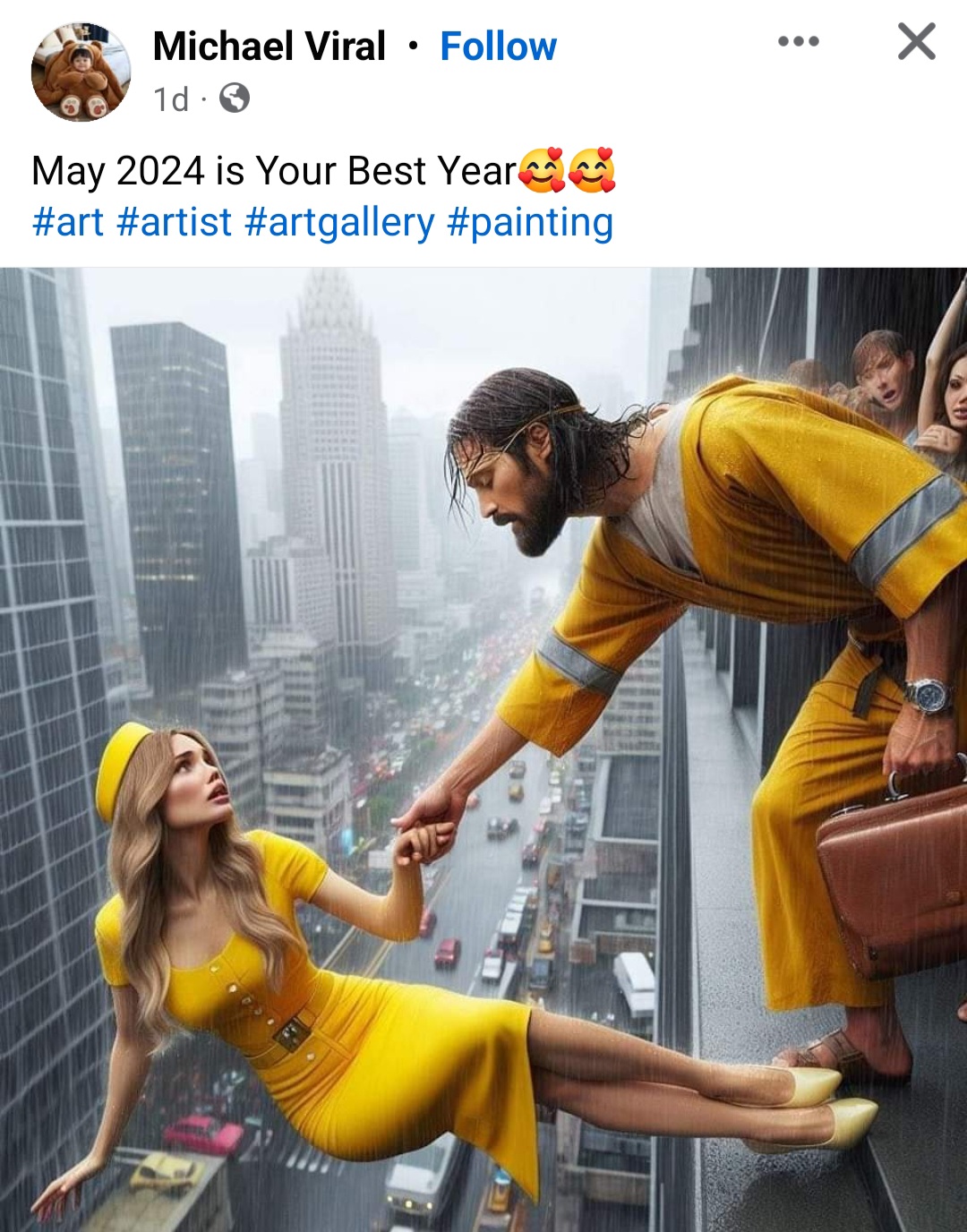 And here we have Pilot Jesus stepping on Dead Jesus in a mud filled plane. He's saving a Stewardess. Nobody sees anything wrong here...