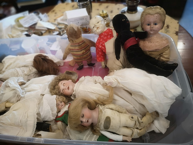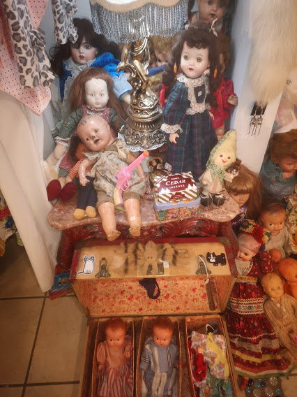 And, moseying around Nelson a couple of days before Christmas, the antique store had just brought in a fine selection of vintage/antique "Creepy Dolls". I have a thing for them.