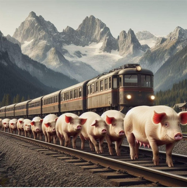 And this one, because I like pigs? Or rail travel? hell, just try it out, let the algorhythims figure out if he likes it...