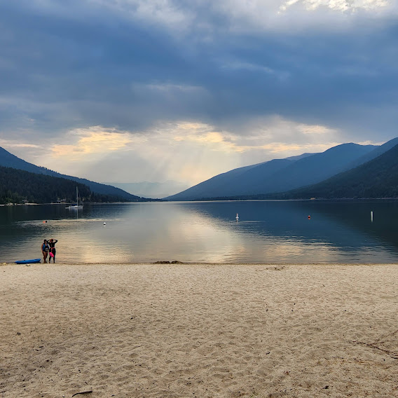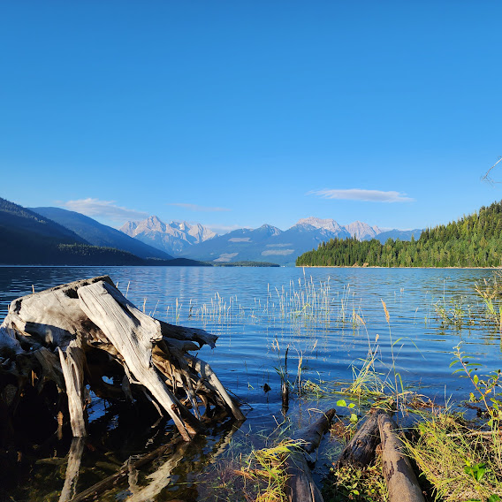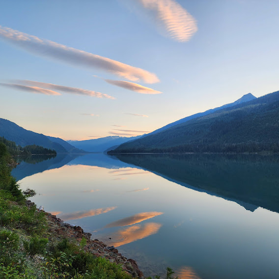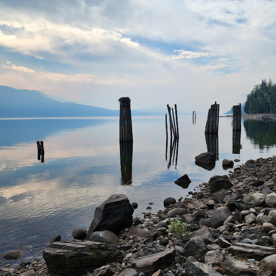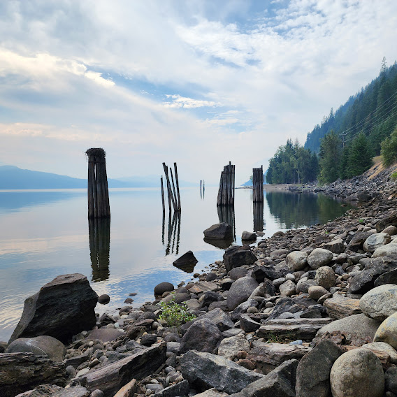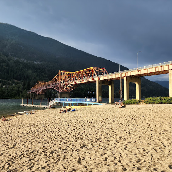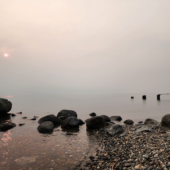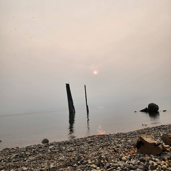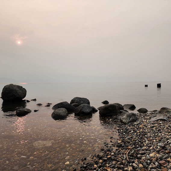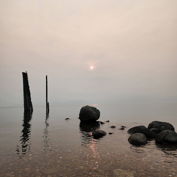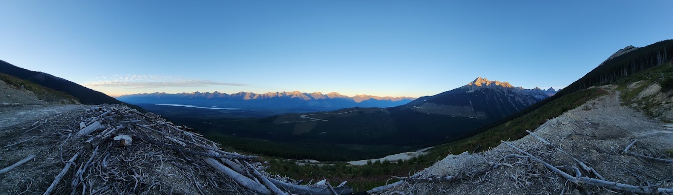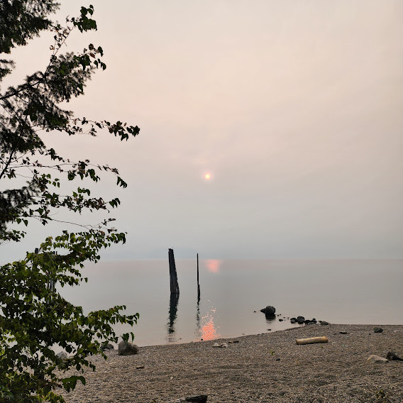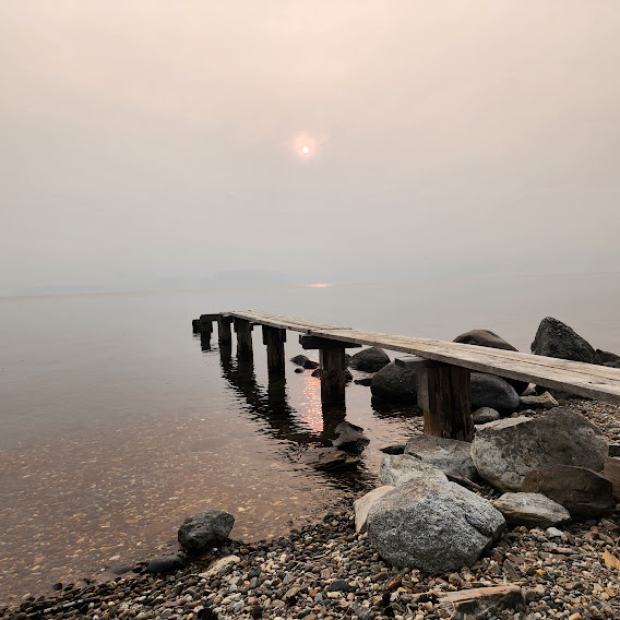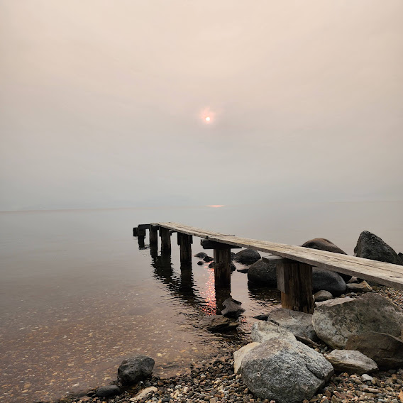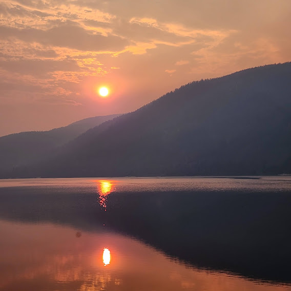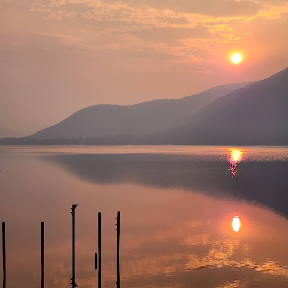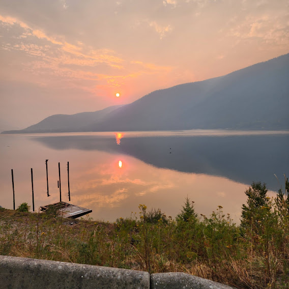 Below a jumble of the latest photos - a Panorama of the view from the deck at work, the lake in the smoke, sunrise in the smoke, lost on the logging roads east of Golden, Revelstoke Lake, The Orange bridge, and a couple of photos of the moon to test out my zoom....
