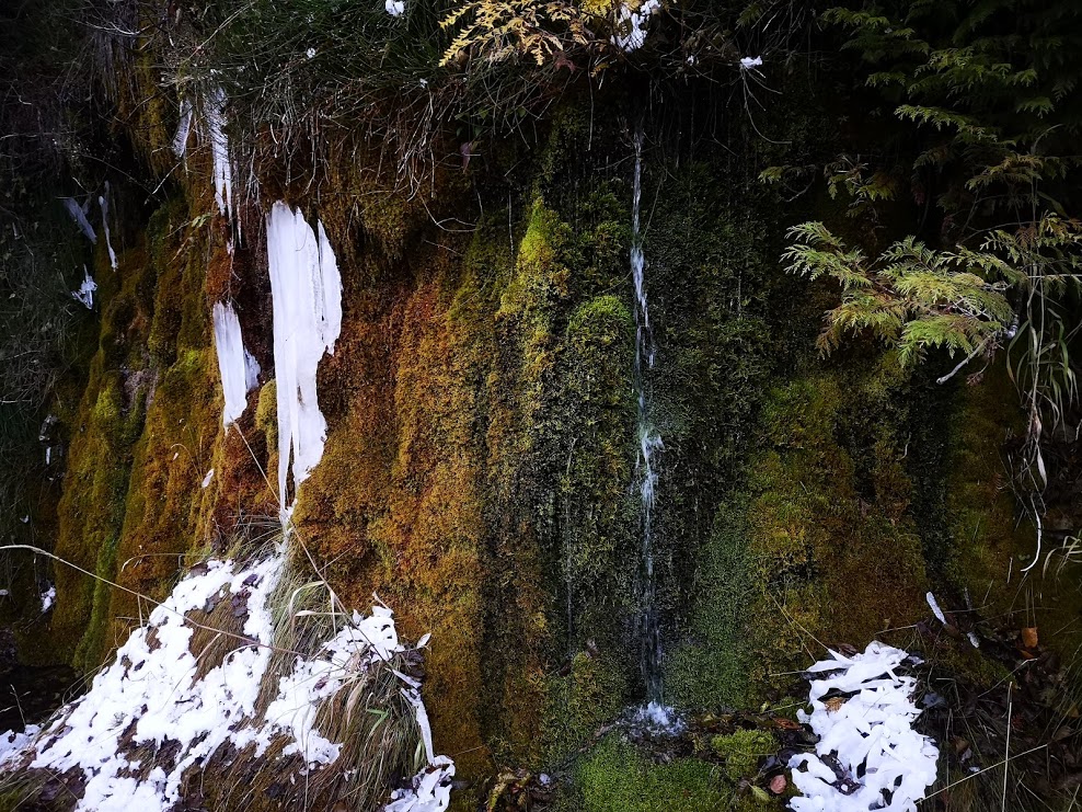 Pink, and sort of bulbous, in a tufa-sort of way. It proved to be a deep organic map of moss & vegetation. Cool, but not what I'm looking for...(you can see where I dug through it to the rock beneath, middle left)