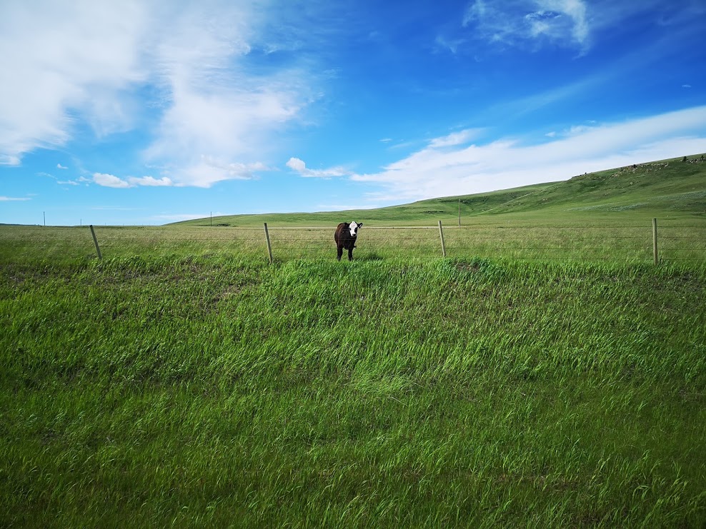 A sandstone butte in a field, on the right-hand side at the base there's a tunnel into the side, next time I'm going to have to jump the fence with a flashlight and see what's up there. Curious - an old root cellar? Indian Cave?