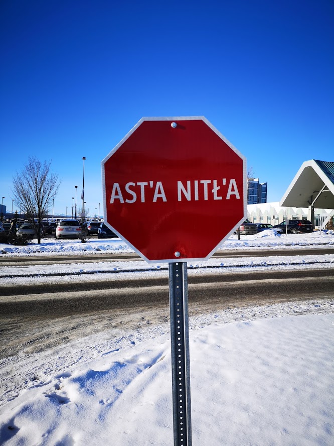 Spotted at the Tsuu T'ina Nation. I think it's a stop sign. Although it rather reminds me of Arnold Schwarzenegger's "Asta - La - Vista".