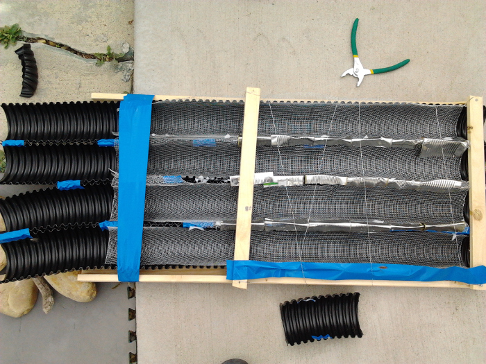 Despite appearances, it actually worked pretty good, collecting the fine gold out of the Athabasca River, problems I later ran into involved having to completely destroy the box to recover the fine gold from the weeping tile (really, in the end, not a big deal, but it lacked practicality), and the fact that while the gold accumulated in the weeping tile, the diamonds would just slide right off of the screen mesh. Probably I lost millions.