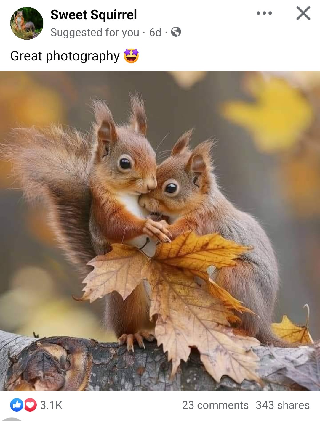 This, the next big thing on my Facebook. More AI generated nonsense, don't ask me how I know, the big one is the cats. But there are others...