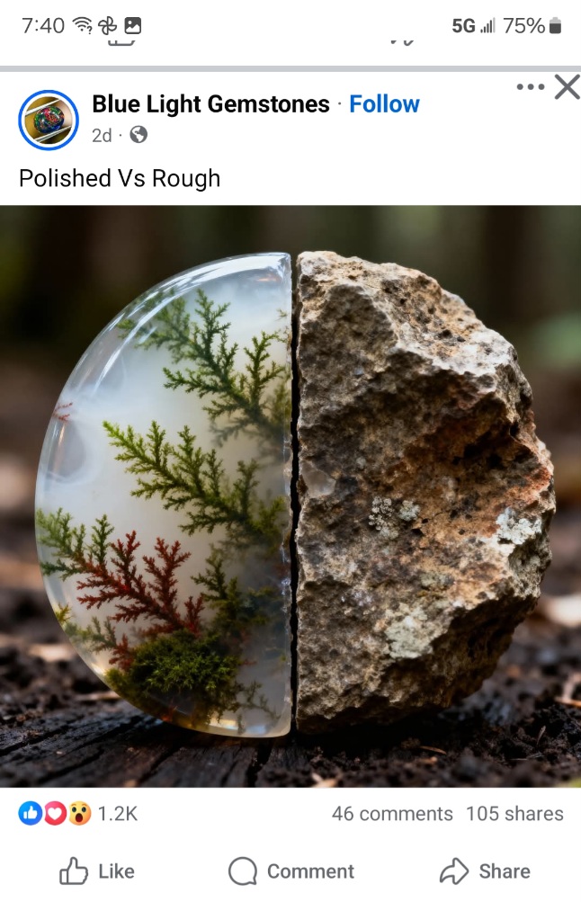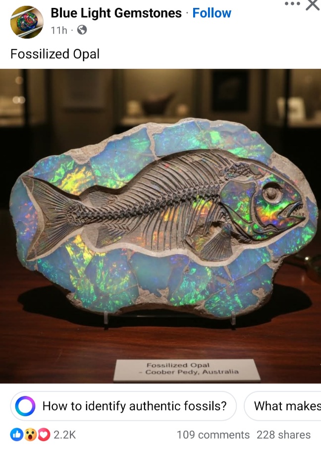 This, my facebook filling up with AI slop, pandering to my taste. Adverts for things that don't exist (search every website every link takes you to!!), posts about made-up-facts, or made up minerals like the few I'll post below: