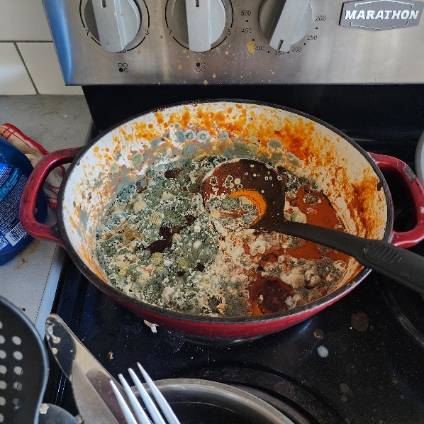 Another few sinks full of filth and refuse and I'm done. This is the kind of stuff the landlord would walk into and Social Services would help you out. The other rooms, bedroom, bathroom, hall, they're all the same, but take out the rotting garbage, food, expired and otherwise, the rest is her problem. This is right on the level of Stormy Texas. I suspect there's a lot of Kootenay places like this...