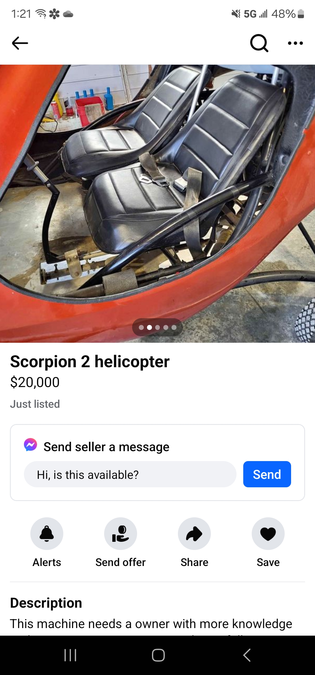 Now, I've known I need a helicopter for quite a while, and were it not for my abysmal finances I'd be pulling the trigger on this. I don't need another fucking piece-of-shit walk-down-the-mountain jeep, I need a helicopter. Owner with more knowledge? That's me. I'll figure it out or die trying. And doesn't every post-apocalyptic Mad Max movie feature a loon in a home-built chopper? I am that loon. This would also add some much-needed action to the movie version of my life. As for licensing, well, in Nelson the police don't have helicopters and I'm pretty sure I could arrange to have this parked on the roof of my building. In fact I'm going to go talk to the landlady now...