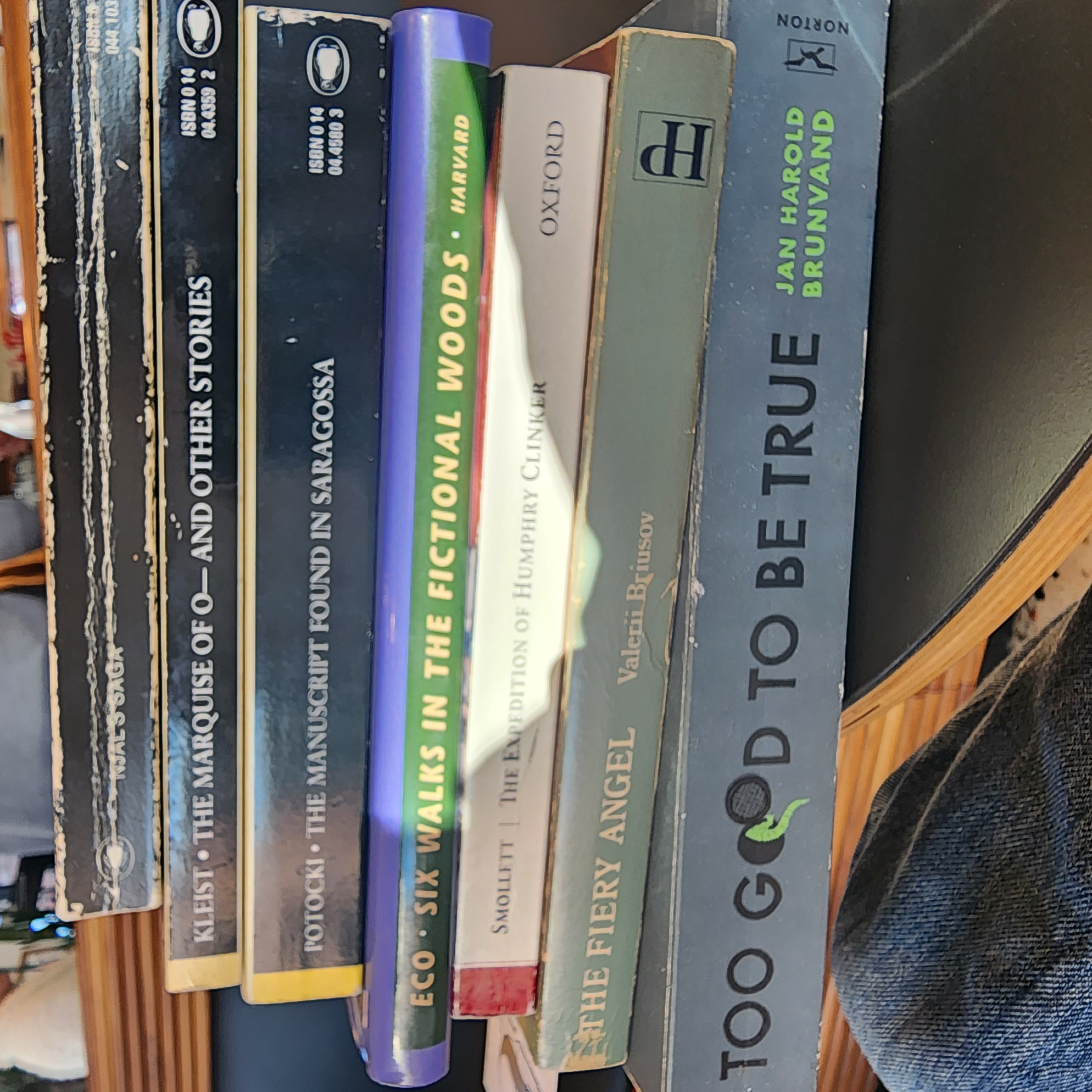 Bookstores as well are on the list, and we do well, hit the Wee Book Inn on Whyte Ave and hit a jackpot of sorts, "The Manuscript found in Saragossa", by Jan Potocki, and you'll recall my enthusiasm for the film adaptation, this, then, will be a treat, and a few other books, Dylan Thomas's "Under Milkwood" for the daughter, one day, after I die, they'll get around to reading them all...