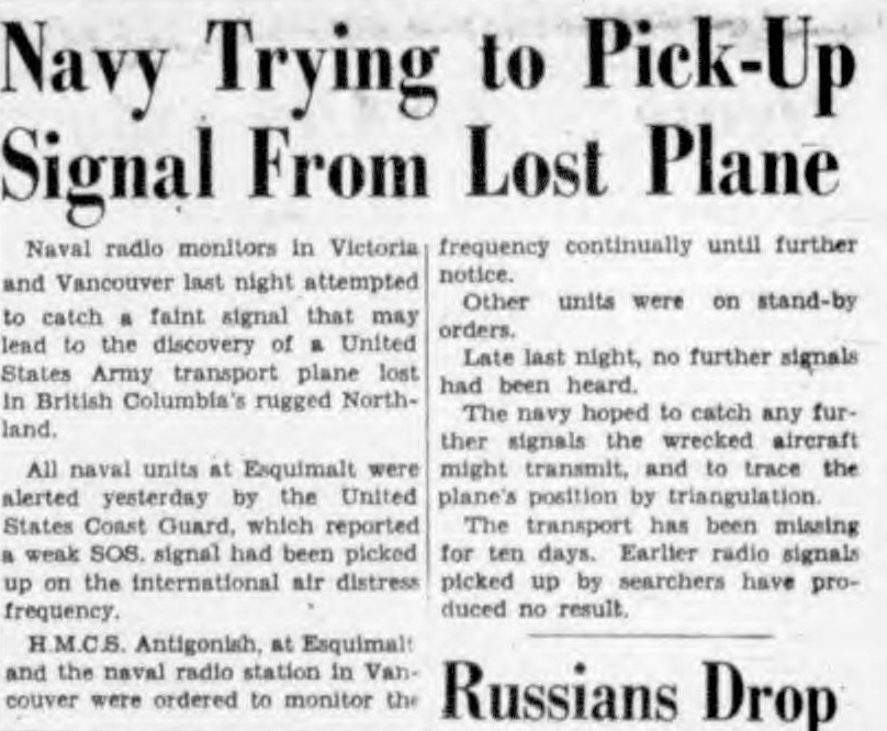 Articles here: https://en.wikipedia.org/wiki/1950_Douglas_C-54D_disappearance and here http://www.ruudleeuw.com/search137.htm and here: https://www.warhistoryonline.com/cold-war/disappearance-of-a-usaf-c-54.html
