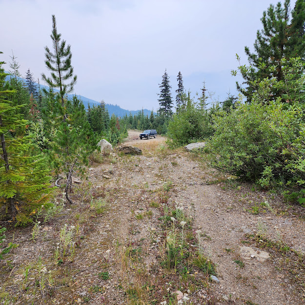Time passes, the road up here, around the lake, it's full of hairpin turns, loose gravel and washboard, there's no speeding or making time. Then onto the logging road, it's rough, unmaintained, up, up, up 6KM until I reach the hairpin turn where it's time to go into 4WD.