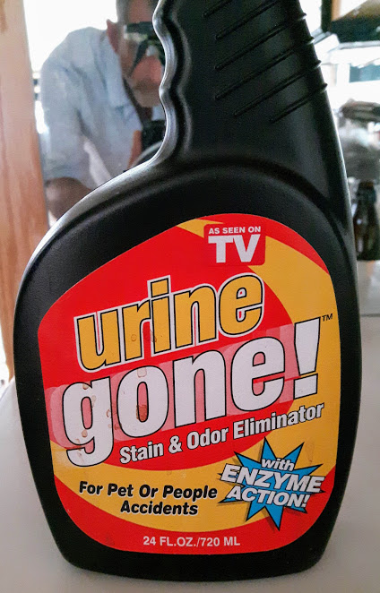 He gratefully accepts it and sticks it in the bathroom...