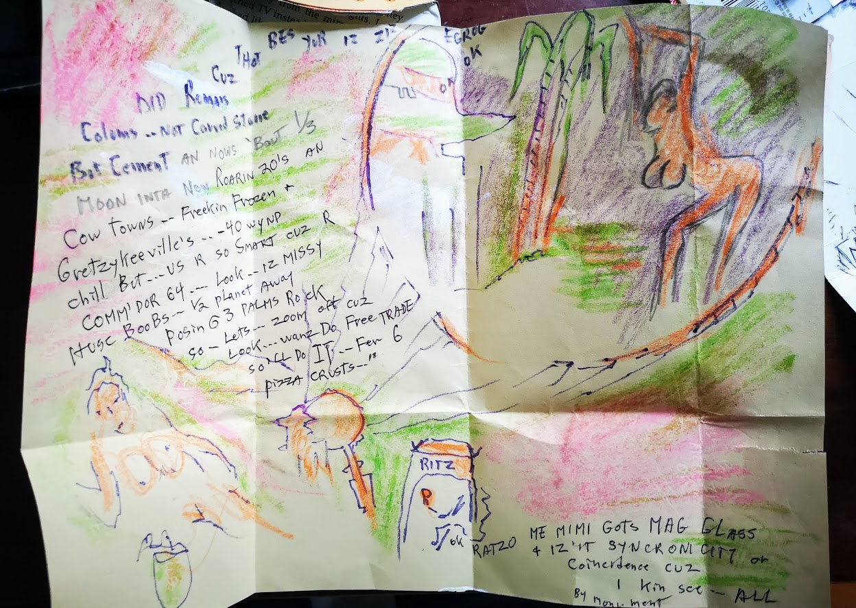 He likes the reverse writing, him and Leonardo Da Vinci...