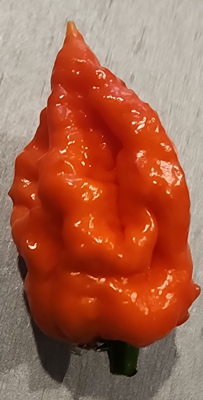 1 Carolina Reaper (harvested as the plenteous bounty from 3 Carolina Reaper plants), approximately 1 inch long.