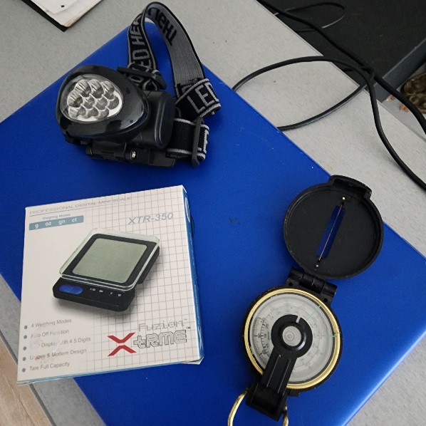 Middle - a weigh scale, good to 1/10 of a gram. For gold. Small quantities of gold. Or MDMA, but I need it for gold.