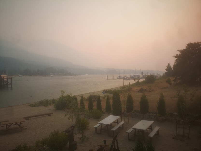 The skies grow increasingly hazy with all the forest fires. You can't smell them - yet, but they're increasingly close.