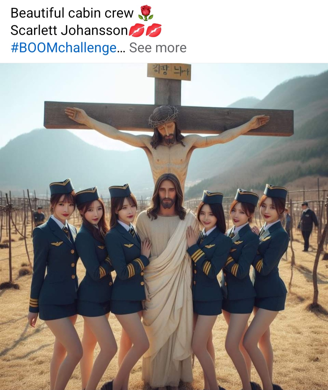 Jesus not letting the cabin crew onto the plane. This - the mud, plane, stewardess, Jesus, what in the fuck was the prompt, and WHY WHY WHY?