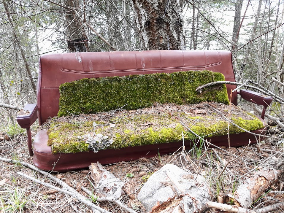 (moss covered car seat/sofa, great for a fashion photoshoot...)