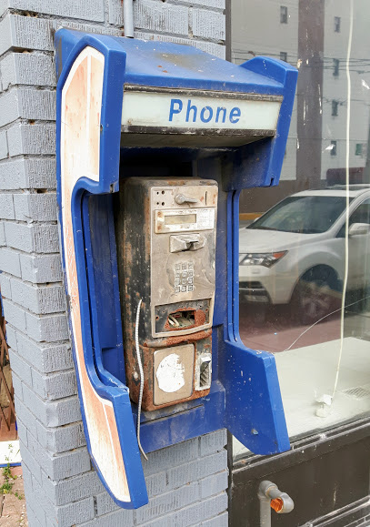 Old pay phones that somehow display like modern art pieces installed on street corners...