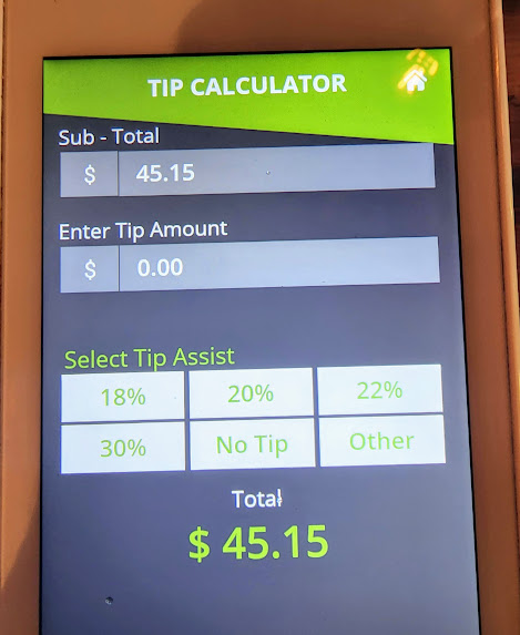 But I'm presented with the debit machine and looking at the tipping options I just about flip my lid. This is what's killing tipping culture: