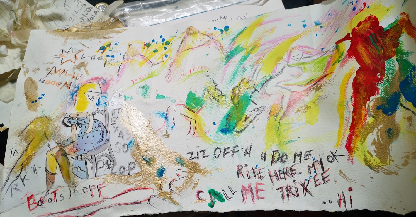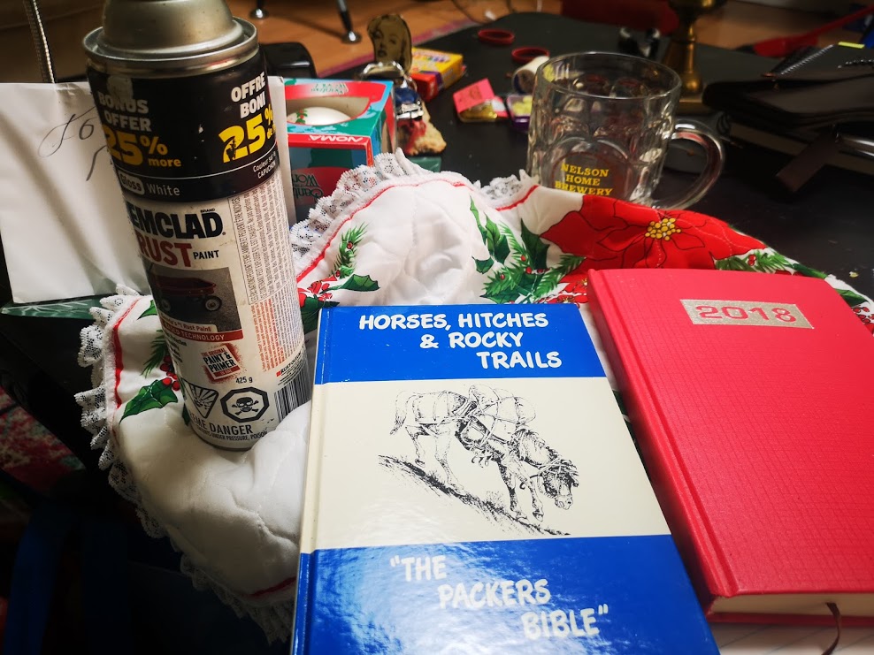 Yep, he forgets no one. Suffice it to say that it continues in this vein for an interminable length of time, unwrapping what could most generously be described as "trash". I don't think he ever takes out the garbage, he just bags it up and gifts it to me. So - on the the Art for Nola - Miss Weedy Iberia, which made me laugh because it's such a plausible Nelson Name...