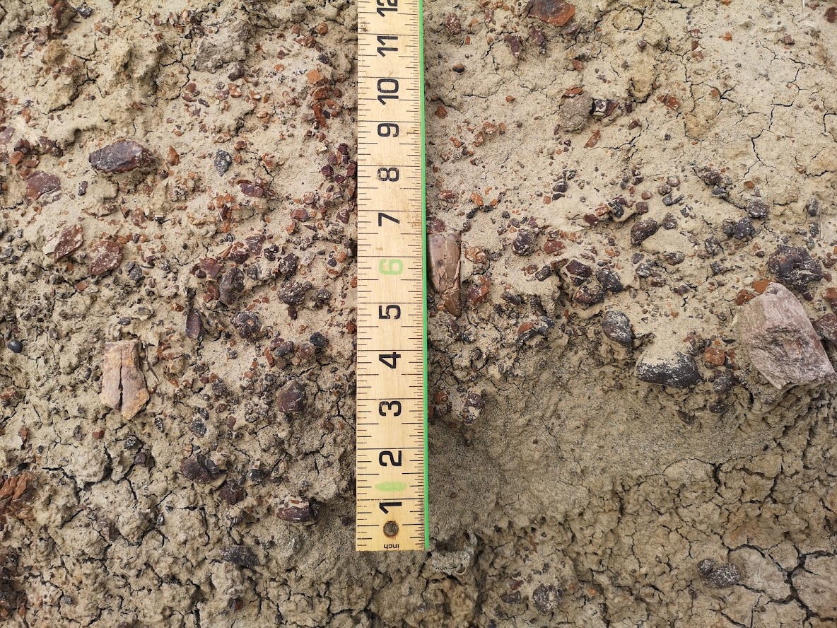 This one, about an inch long, but a thicker body than the last one we found. And, sliding down the hoodoo to check the bottom I make my big find of the day: