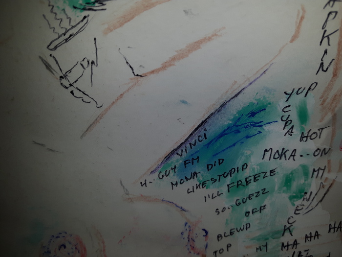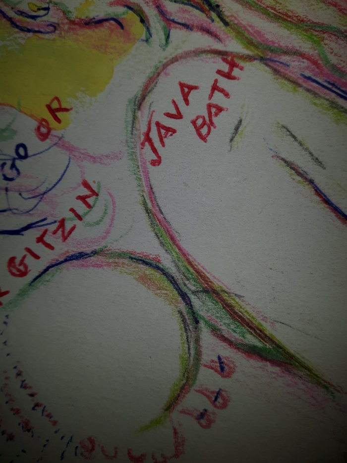 a "java moka" tattoo drawn onto the leg of one of his stripper girls...