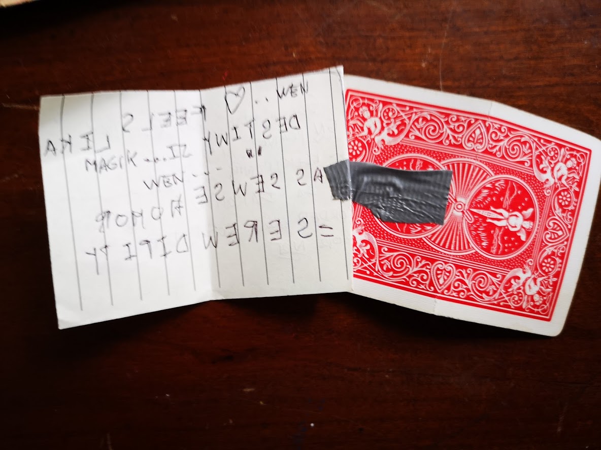 He likes the reverse writing, him and Leonardo Da Vinci...
