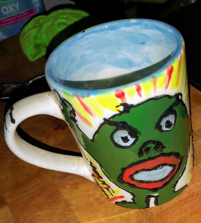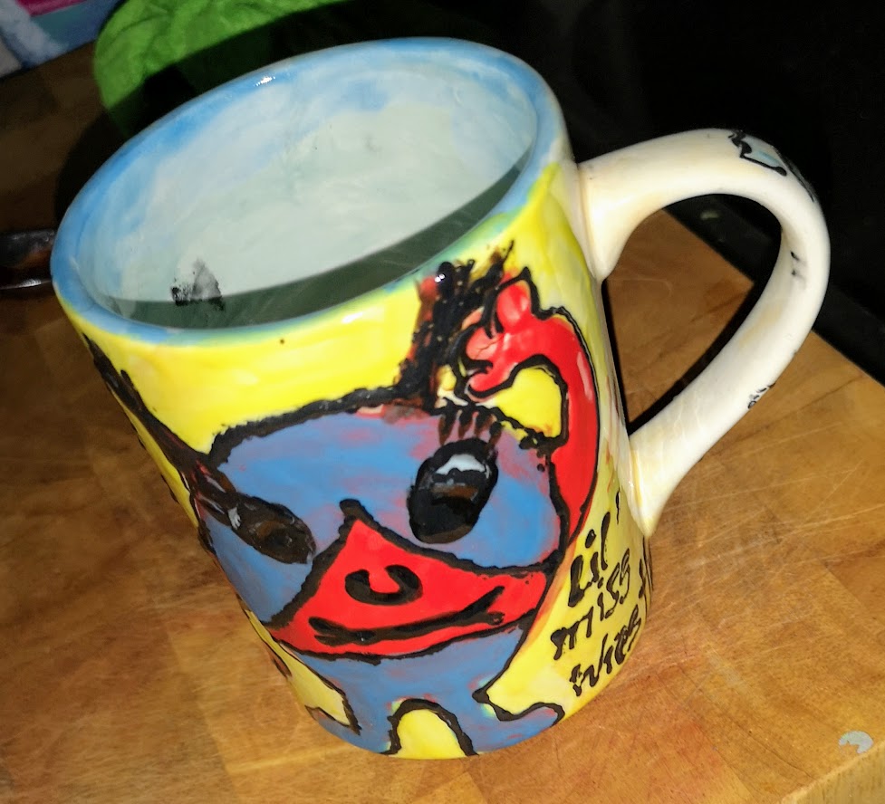 Found these in the locker from when the daughter was 6 or 7 years old, she loved to wrestle and the little Miss books. And so I painted her a "Little Miss Wrestle" mug...
