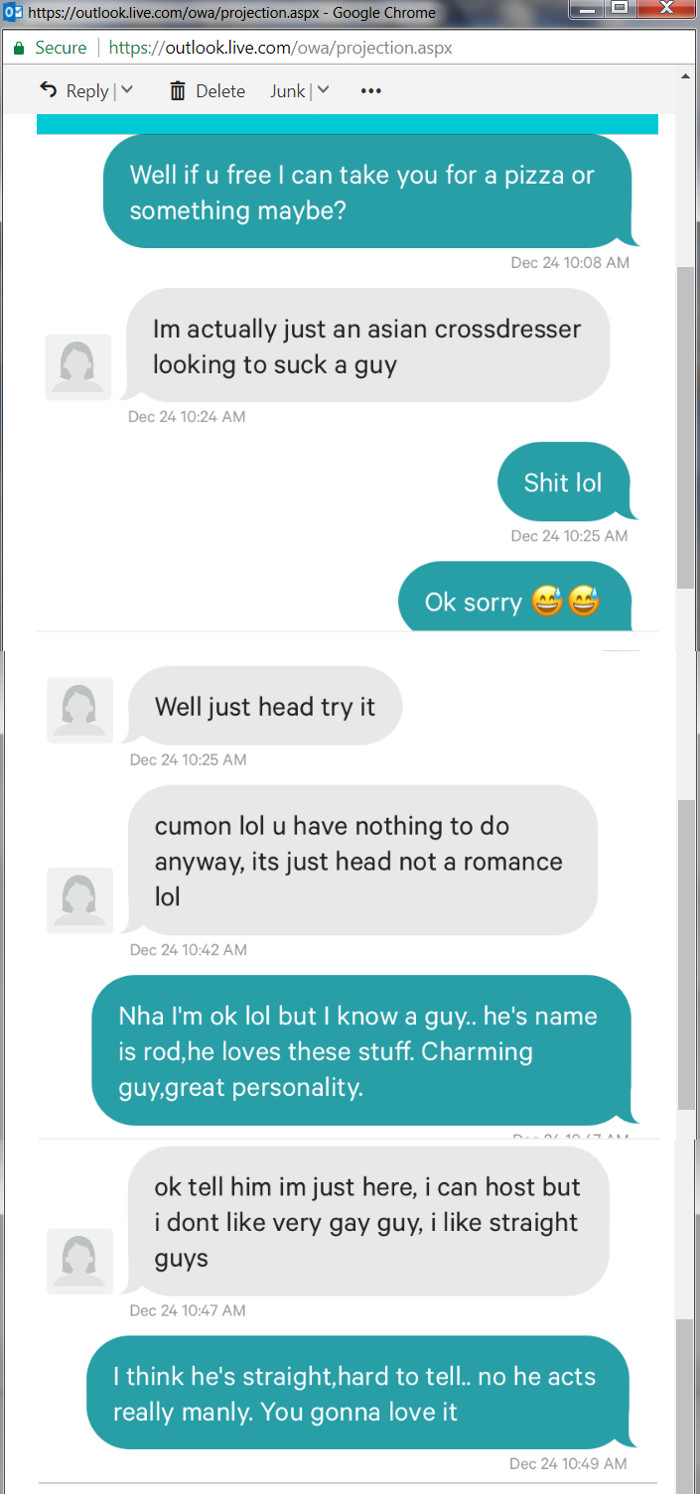 He forwards me a few screenshots as to what he's been up to...finding me a date for Xmas, apparently...