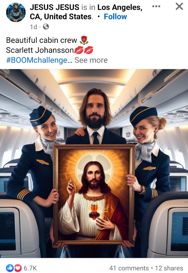 Hundreds upon hundreds of pictures of Jesus, I'm suspecting CGI (lol) - or AI - If you notice one of the girls has 6 fingers...(or 5 fingers no thumb).